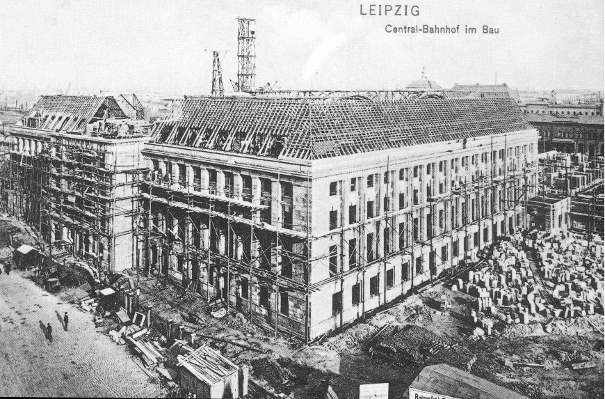 Mit dem imposanten Bau in einer Länge von 300 m und den 26 Bahnsteigen wurde 1915 eine Kathedrale für die Eisenbahn eröffnet. Die alten Wartesäle, der Speisensaal und der Querbahnsteig mit seiner Länge von 270 m sind Zeugnisse der Eisenbahnepoche. Wo heute der Hauptbahnhof steht, gab es vormals vier alte Bahnhöfe. Vom Dresdner Bahnhof fuhr 1839 die erste deutsche Ferneisenbahn ins 120 km entfernte Dresden. Im neuen Bahnhof hat Blumen-Hanisch 1913 geöffnet und ist damit das älteste Geschäft. Das Warten auf den nächsten Anschlusszug konnten sich die Reisenden ab den 1950iger Jahren im Zeitkino in der alten Tunnelstation verkürzen. Seit 2013 verkehren die S-Bahnen im Citytunnel und die Reisenden können in der Tunnelstation zusteigen.