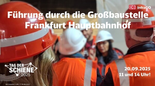 Dafür stehen wir Ihnen am 20.09.2025 auf Bahnsteig 1/1a für Fragen zur Verfügung und geben spannende Einblicke in den faszinierenden Umbau des Frankfurter Hauptbahnhofs im Rahmen des Großprojekts Masterplan FFM Hbf.