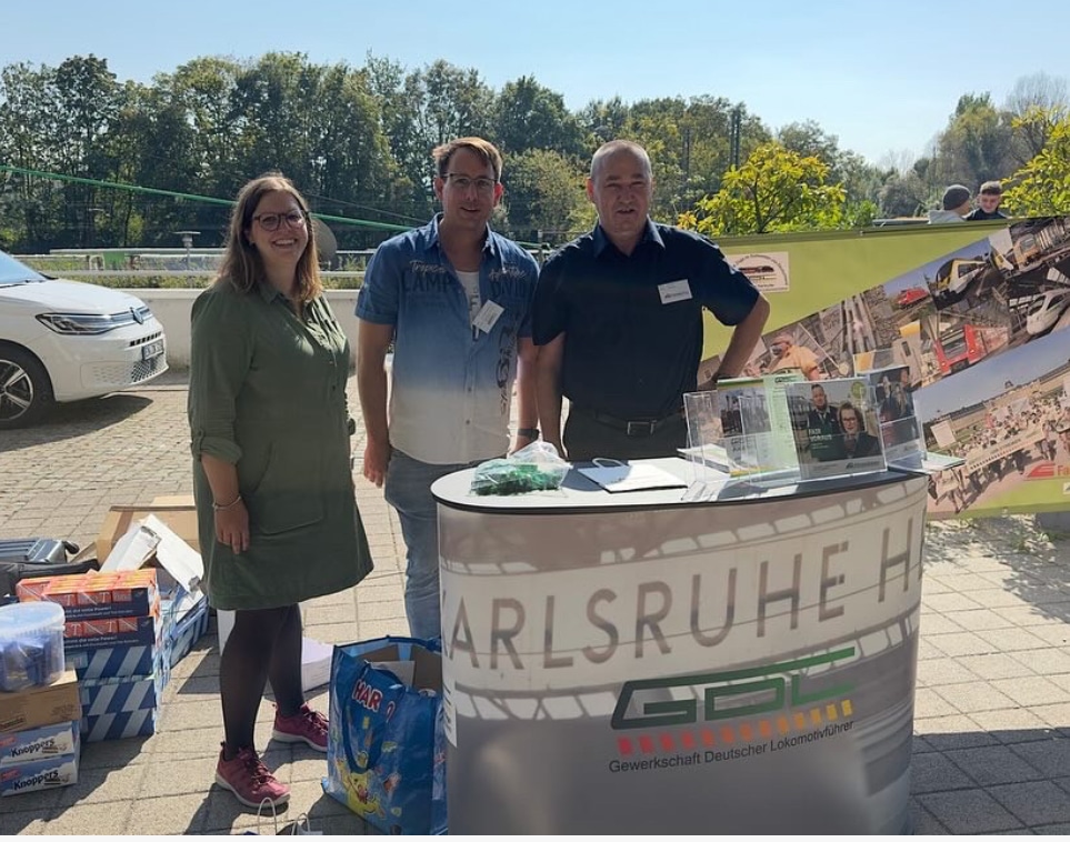 Die GDL Ortsgruppe Karlsruhe wird mit einem Infostand bei der Betriebszentrale der DB InfraGo anwesend sein und rund um die tollen Berufe im Eisenbahnbereich informieren. In ungezwungener Atmosphäre könnt Ihr uns ansprechen und dürft euch über die ein oder andere Kleinigkeit freuen. Lasst uns gemeinsam diesen Tag begehen.