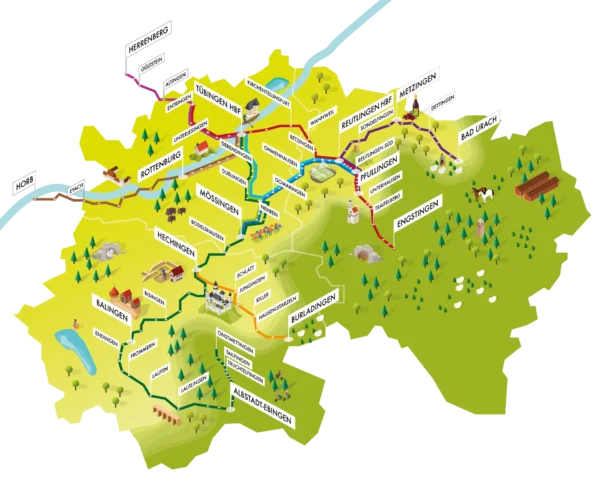 Die Regional-Stadtbahn Neckar-Alb ist ein regionales Schienenverkehrsprojekt, das die Städte und Gemeinden der Region ­Neckar-Alb durch eine Zweisystem-Stadtbahn verbindet. Dabei nutzen, modernisieren, erweitern und reaktivieren wir Eisenbahnstrecken im Umland und verknüpfen diese mit neu zu bauenden innerstädtischen Straßenbahnstrecken. Damit schaffen wir eine komplett neue Säule des Nahverkehrs in ­unserer wirtschaftsstarken Region mit ihrem Oberzentrum Reutlingen-Tübingen.