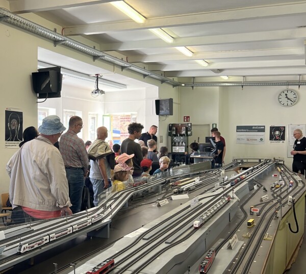 In einem einführenden Vortrag wird zunächst das System Eisenbahn erklärt. Anschließend geht es zum Eisenbahnbetriebsfeld. Hier wird die Funktionsweise der Stellwerke erklärt, und es besteht die Möglichkeit, die Modellzüge zu beobachten sowie in die Betriebszentrale zu schauen. Dort gibt es Einblicke in die moderne Digitale Stellwerkstechnik (DSTW) und Fahrzeugdisposition, das Management von Fahrzeugen. Zum Abschluss kann man in der Außenanlage selbst Hand an Stellwerke und Weichen legen. Geeignet ab 8 Jahren.