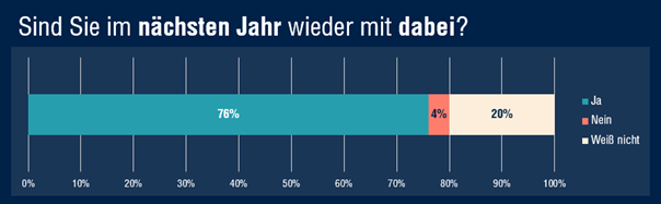 Auch die Bereitschaft zur erneuten Teilnahme im kommenden Jahr ist ein starkes Signal für die hohe Zufriedenheit: 76 Prozent der Befragten erklärten bereits jetzt, 2026 wieder dabei zu sein.